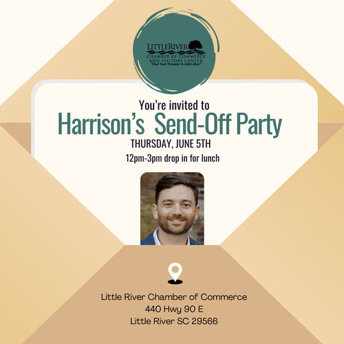 Join us to send Harrison off! We are so sad to see him go but so thrilled for his new opportunity in PA! Drop in to have lunch and help us congratulate him on his new adventure. Harrison has been an incredible asset to the Little River Chamber of Commerce over the past few years, bringing energy, insight, and a collaborative spirit to everything he touches. His leadership and commitment to fostering local business growth have helped strengthen our community!